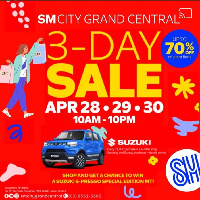 CALOOCAN CITY — SM City Grand Central is thrilled to announce its first 3-day sale event for 2023. Happening on April 28, 29 to 30, shoppers can take advantage and enjoy amazing discounts on a wide range of products throughout the mall.