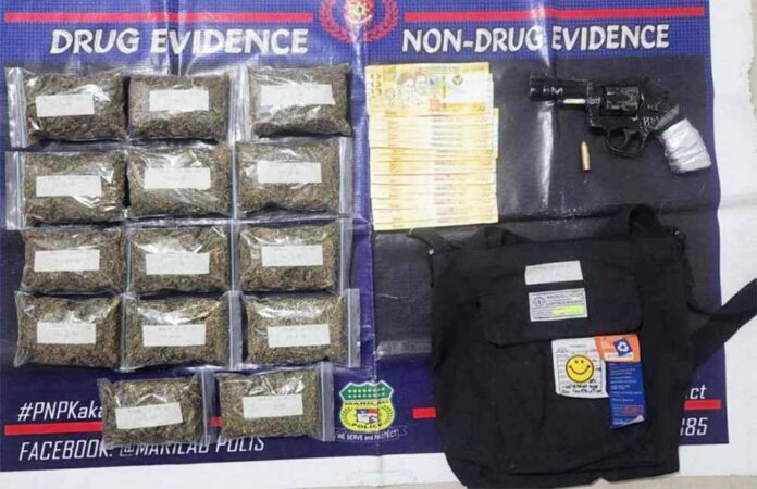 Nakumpiska mula sa suspek ang isang sachet ng suspected dried marijuana leaves na ibinenta sa undercover operatives kapalit ng P500 marked money with P7,500 boodle money at 13 sachets ng suspected marijuana na tinatayang nagkakahalaga ng P84,000.00, isang sling bag, at isang cal. .38 revolver na walang serial number na may lamang 1 bala at marked monye na ginamit sa operasyon.