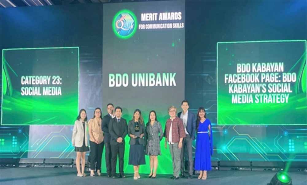 BDO Unibank Inc.’s (BDO) BDO Kabayan Facebook Page earned recognition at the 21st Philippine Quill Awards for excellence in Social Media Strategy.
