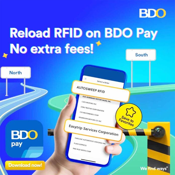 MOTORISTS now have one less thing to worry about on the road: BDO Pay now offers zero fees when reloading Autosweep and Easytrip RFID accounts.
