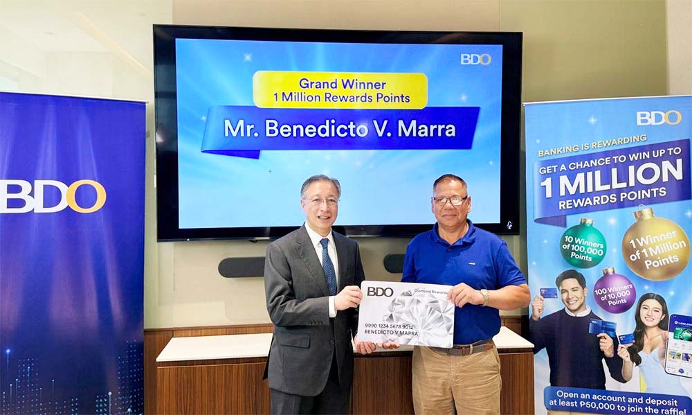 MORE than two decades of hard work overseas—and a lifelong habit of disciplined saving—came full circle for Benedicto Marra, 62, an overseas Filipino worker based in Saudi Arabia, after he emerged as the grand draw winner of 1 Million BDO Rewards Points under BDO Unibank’s Save Your Way to a Million Rewards Holiday Raffle Promo.
