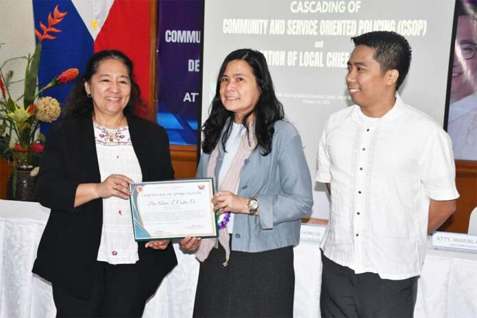 An open forum allowed participants to raise concerns and clarify roles, followed by the distribution of certificates led by Dir. Evangeline R. Almirante, Regional Director of NAPOLCOM Regional Office III, and Atty. Yadao.