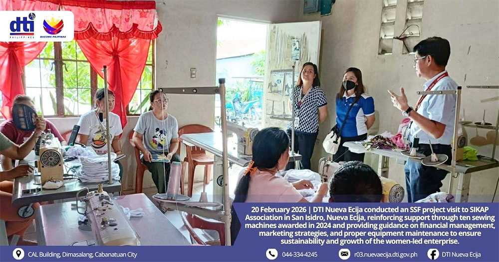 SAN ISIDRO, Nueva Ecija (PIA) — The Department of Trade and Industry (DTI) Nueva Ecija provided business management guidance to a women-led association in San Isidro town to help sustain and grow its sewing enterprise.