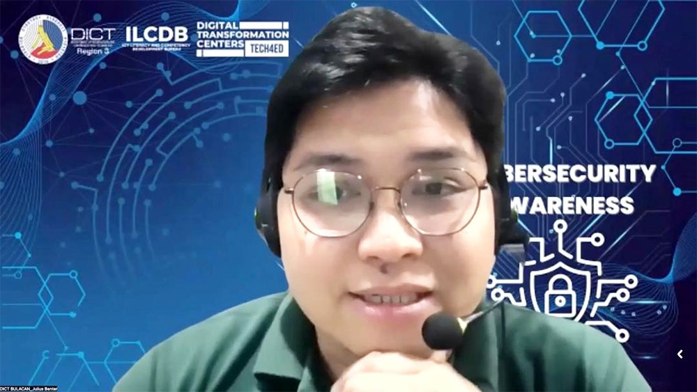 DICT Central Luzon Project Development Officer Julius Lester Benter discussed major cyber threats such as phishing attacks, ransomware, and various online scams.