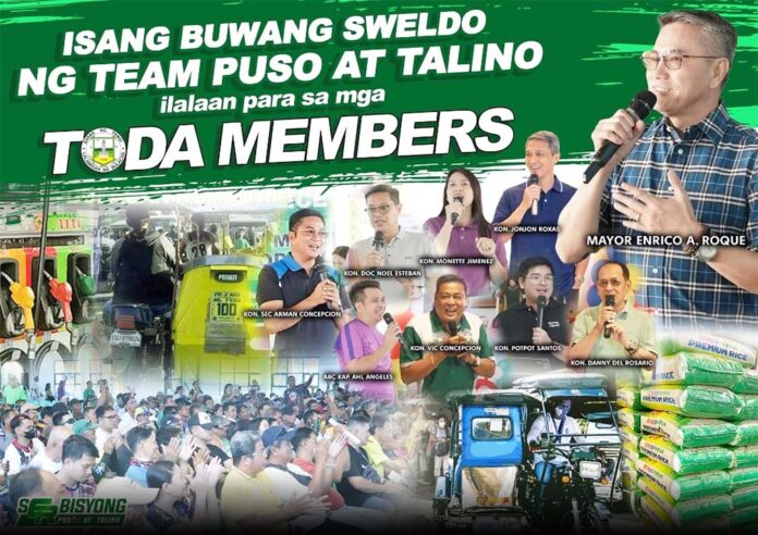 PANDI, Bulacan — Dahil sa patuloy na umiigting ang giyera sa Gitnang Silangan, napagkaisahan ng Team Puso at Talino sa pangunguna ni Mayor Enrico Roque na ilaan ang kanilang isang buwang suweldo sa mga kasapi ng Tricycle Operators and Drivers Association (TODA).