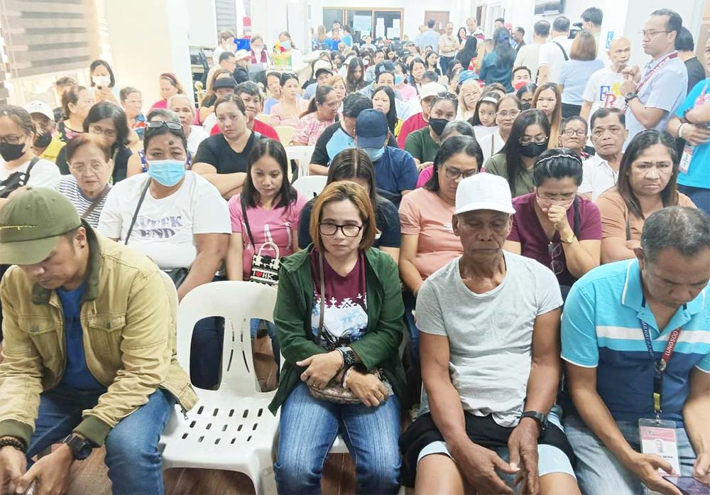 Some of the 119 OFWs kin in the City of Malolos in Middle East waiting for their turned to receive financial assistance worth P10,000 from the City Government of Malolos on Tuesday afternoon (March 24, 2026). (Photo by Allan Casipit)