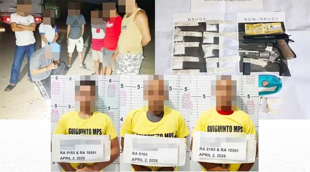 CAMP ALEJO SANTOS, Bulacan — Naaresto ng mga operatiba ng Guiguinto Municipal Police Station (MPS) ang tatlong hinihinalang sangkot sa iligal na droga sa isinagawang buy-bust operation bandang 6:30 ng gabi noong Huwebes (Abril 2) sa Brgy. Daungan, Guiguinto, Bulacan.