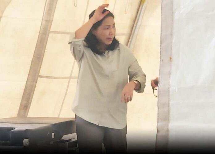 Dr. Monserrat Chichioco, medical chief of DOH-JBLMGH, personally supervises the establishment of the emergency tent hospital at the Obando National High School evacuation center.