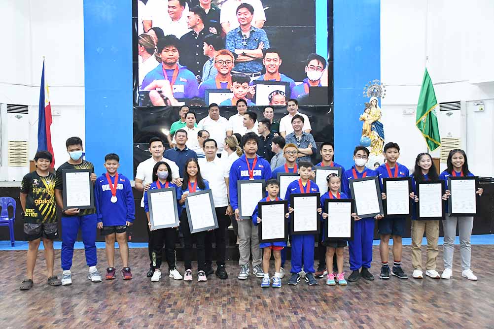 BULAKENYO young athletes who competed and won in the Batang Pinoy National Championships with top local officials led by Governor Daniel R. Fernando and Vice Gov. Alexis C. Castro after receiving a copy of Resolution No. 271-S’2023 during the First Monday Flag Ceremony (June 5, 2023) held at the Bulacan Capitol Gymnasium, City of Malolos, Bulacan. Also in the photo are (from left, top row down) Board Members Liberato P. Sembrano, Ramilito B. Capistrano, Raul A. Mariano, Allan P. Andan, Cezar L. Mendoza, Lee Edward V. Nicolas, Allen Dale DC. Baluyut, William R. Villarica, Provincial Administrator Antonia V. Constantino, Board Members Renato DL. De Guzman, Jr., Arthur A. Legaspi, Romeo V. Castro, Jr., Romina D. Fermin, and Richard A. Roque. (UnliNews Online)
