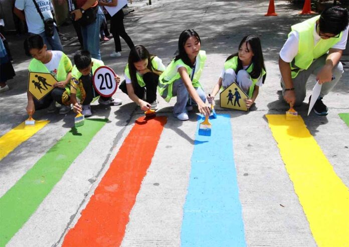 VALENZUELA CITY — Learners from Vicente P. Trinidad National High School in Valenzuela City went out of their classrooms on Friday to paint pedestrian lanes outside their school as a call for safer roads for everyone, especially children.