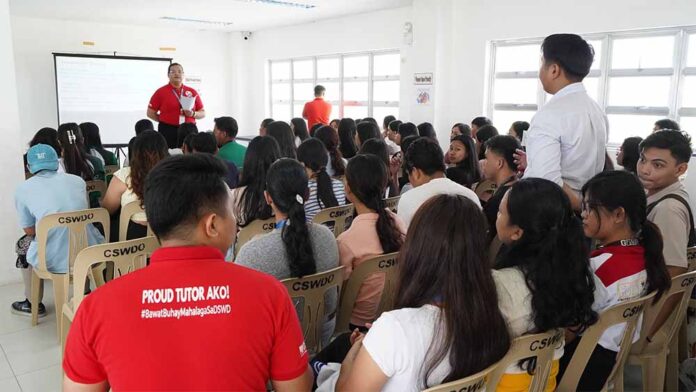 Ang unang batch ng mga mag-aaral sa kolehiyo mula sa Bulacan State University (BSU) na kalahok sa Tara, Basa Tutorial Program (TBTP) sa Lungsod ng Malolos, Bulacan kamakailan. (Larawan mula sa Malolos City Information Office)