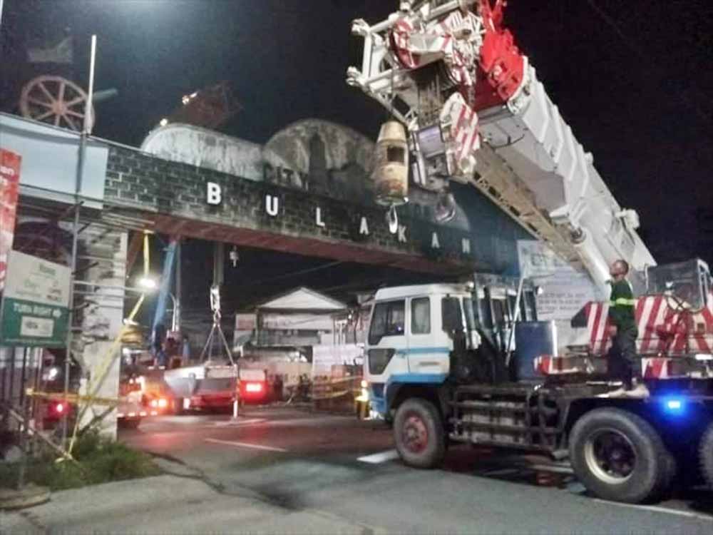 ANG makasaysayang arko sa pagitan ng lungsod ng Malolos at bayan ng Guiguinto ay tuluyan nang tinibag noong Sabado (Aug. 31) upang palitan ng mas matibay at modernong arko. (Kuha ni Allan Casipit)